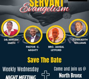 Join us Wednesdays for uplifting prayer meetings as we explore the topic Servant Evangelism. We look forward to seeing you November 5-November 26 @730p.
